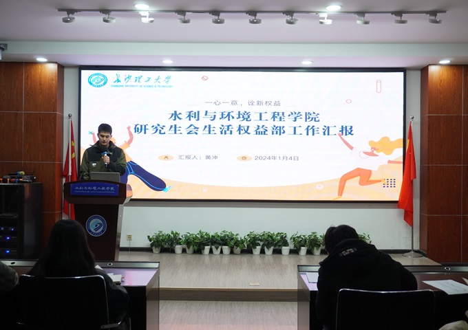 为总结院研究生会本学期工作,促进研究生会各部门之间的交流合作,2024年1月4日晚6点,水利学院于工三B319召开2023—2024年第一学期院研究生会第二次全体例会暨院研究生会“优秀工作者”评选会。此次会议由院研究生会负责人吴琼主持,研究生辅导员杜丘及研会全体成员参会。
