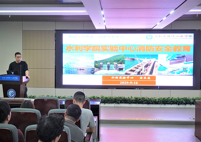 为提升实验室安全意识,筑牢科研安全防线,9月16日上午,水利学院在云塘校区新能源一栋2楼会议室举行2025级研究生实验室消防安全教育专题会议。会议由水利学院实验中心主任余关龙主讲,研究生辅导员杜丘主持,2025级全体研究生参会。