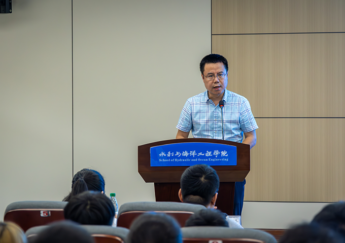 青年长江学者姚宇代表导师发言。他以“求真、耐寂、探索、融合”四种精神勉励研究生新生尽快完成从“学习者”到“创造者”的转变,坚守学术道德、锤炼科研意志,做真正“底色亮、能力强、善创新、敢担当”的水利人。