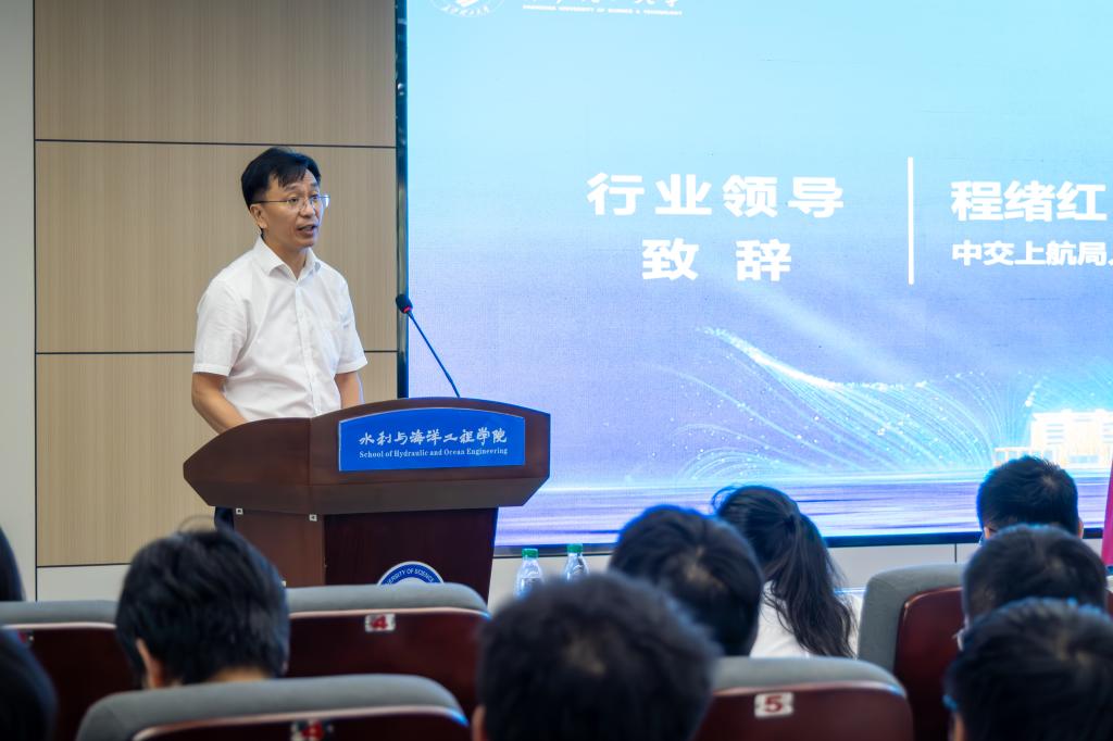 程绪红在致辞中表达了上航局对校企协同育人和水利水运人才高质量发展的高度重视,嘱托同学们要热爱行业、热爱生活、不忘初心,在加强团队合作和提升解决问题能力等方面持续发力,在攻坚克难中实现个人价值与行业发展的同频共振。他表示上航局及旗下13家子公司将为同学们提供全面、可靠、高效的研究与实践场景,欢迎同学们赴上航局及旗下开展学术交流、实践实习和就业入职。
