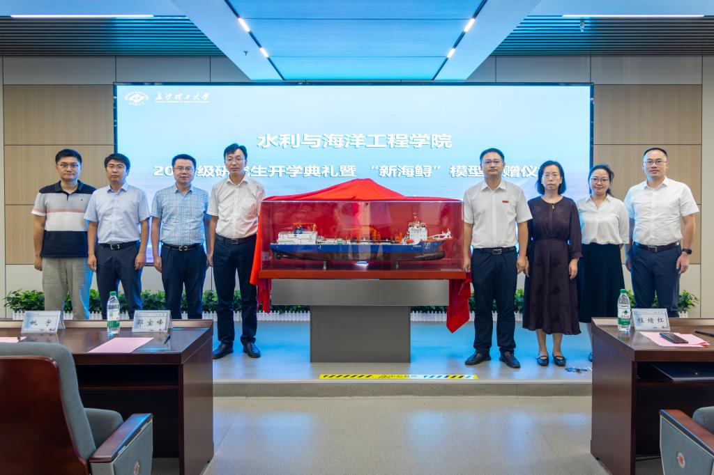 9月15日下午,水利与海洋工程学院2025级研究生开学典礼暨“新海鲟”轮模型捐赠仪式在云塘校区新能源大楼举行。中交上海航道局有限公司人力资源部总经理程绪红、中交上航局中交水利公司党委副书记、总经理邵宝峰、人力资源部总经理助理钱俊、中交水利水电建设有限公司人力资源部经理刘江丽、中港疏浚有限公司人力资源部经理王荣丽、校水利学院院长陈杰,青年长江学者、博士生导师姚宇,副院长伍志元等领导嘉宾出席。活动由学院研究生辅导员杜丘主持。
