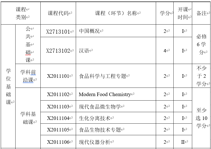 课程总学分要求不少于28学分(其中学位必修课不少于18分、学位选修课不少于10分),课程学分设置见表1。必修培养环节6学分(不计入规定学分),其中:学术活动2学分,开题报告2学分,教学科研实践2学分。学位论文36学分。最低总学分≥70学分。