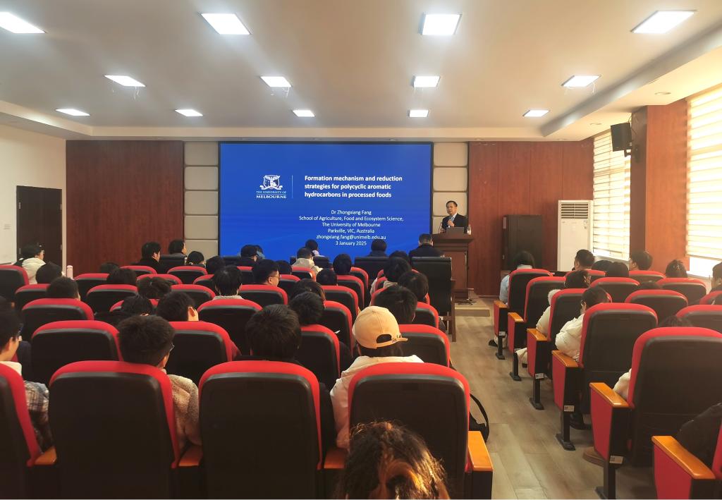 2025年1月3日,澳大利亚墨尔本大学方忠祥教授受邀到开云官网作了题为“Formation mechanism and reduction strategies for polycyclic aromatic hydrocarbons in processed foods”的学术报告。本次报告会由学院院长王建辉教授主持,100余名师生参会。