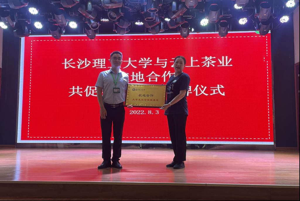 乡村振兴,产业兴旺是基础、是支撑,是解决“三农”一切问题的前提。传统乡村产业的振兴既需要有情怀、有能力的企业家的助力,又亟需理论与科技的支撑。因此实践团与湖南省高马山农业有限公司、湖南省阿香茶果食品有限公司、湖南省安化县云台山·云上茶业有限公司、安化云台山八角茶业有限公司、安化卧龙源茶业有限公司四家企业进行校地合作并举行授牌仪式。师生们与企业从茶叶的种植条件、生产标准、品种优育、产品销售、提高茶叶品质、优化加工工艺、寻找风味影响因素等方面进行专业性讨论和指导,积极探索以茶赋能推动脱贫攻坚同乡村振兴有效衔接的可行路径。