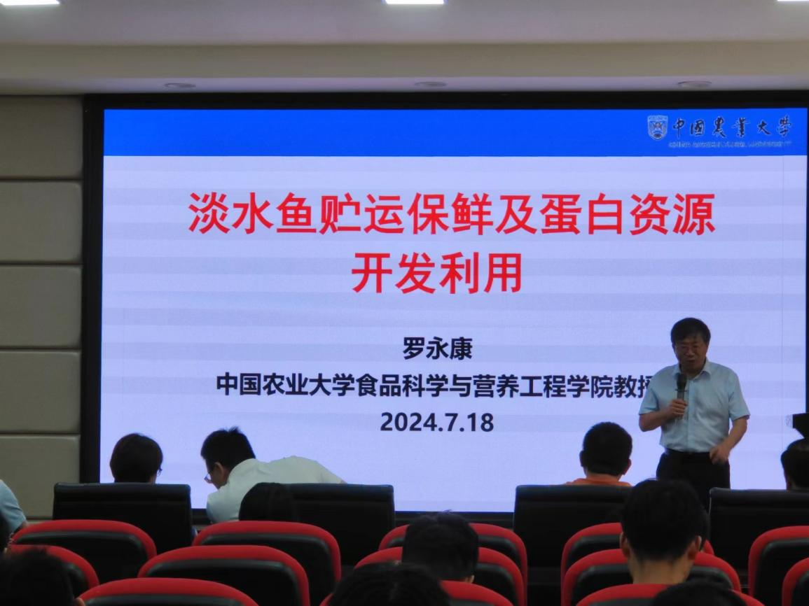 2024年7月18日上午,中国农业大学博士生导师罗永康教授应开云kaiyun体育食品与生物工程学院邀请,在工科三号楼A320会议室做题为“淡水鱼贮运保鲜及蛋白质资源开发利用”的学术报告。会议由我院院长王建辉主持,学院百余名师生参加了本次报告会,现场座无虚席,收获了阵阵热烈掌声。