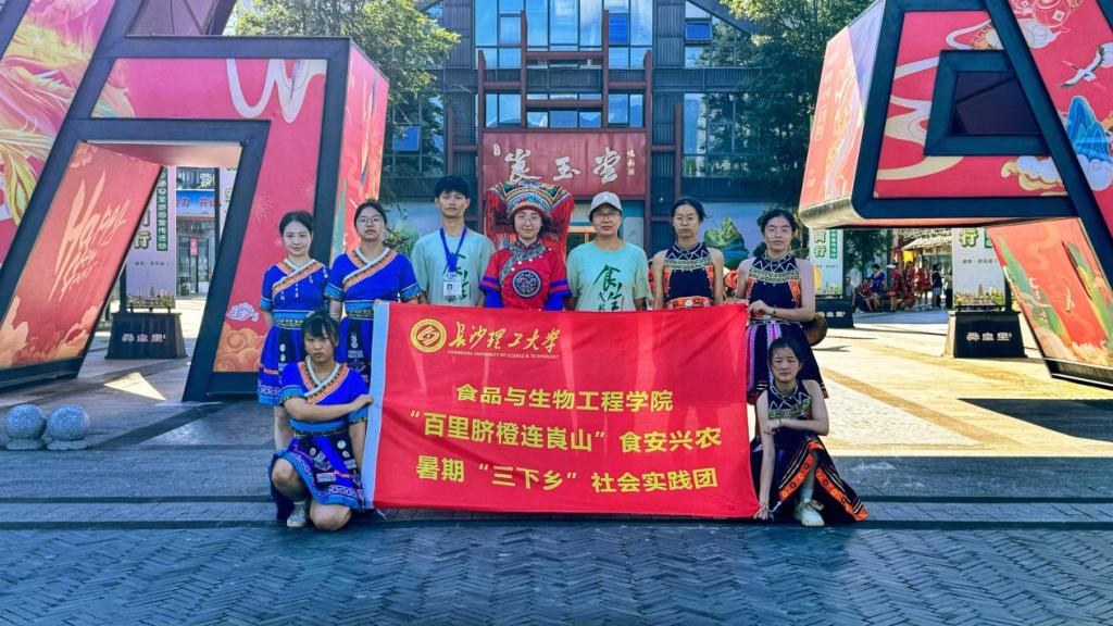 为弘扬瑶族传统文化,传承瑶族非物质文化遗产,7月9日,开云kaiyun体育食品与生物工程学院“百里脐橙连崀山”——食安兴农暑期“三下乡”社会实践乡村振兴团(以下简称“食安兴农团”)来到双峰县第一中学,组织开展花瑶“拦门酒”--瑶族文化宣传活动。