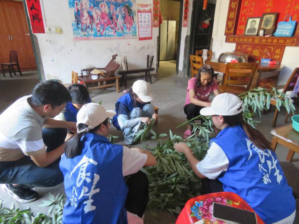在专题调研座谈会上,实践团与乡党委政府就食品安全普及、特色农产品开发等议题展开深入交流。团队深入湘榧村等地,走访群众40余户,开展专项帮扶5户,慰问老党员3人。在服务过程中,队员们运用专业特长排查食品安全隐患,指导食品科学储存,并处理过期药品。
