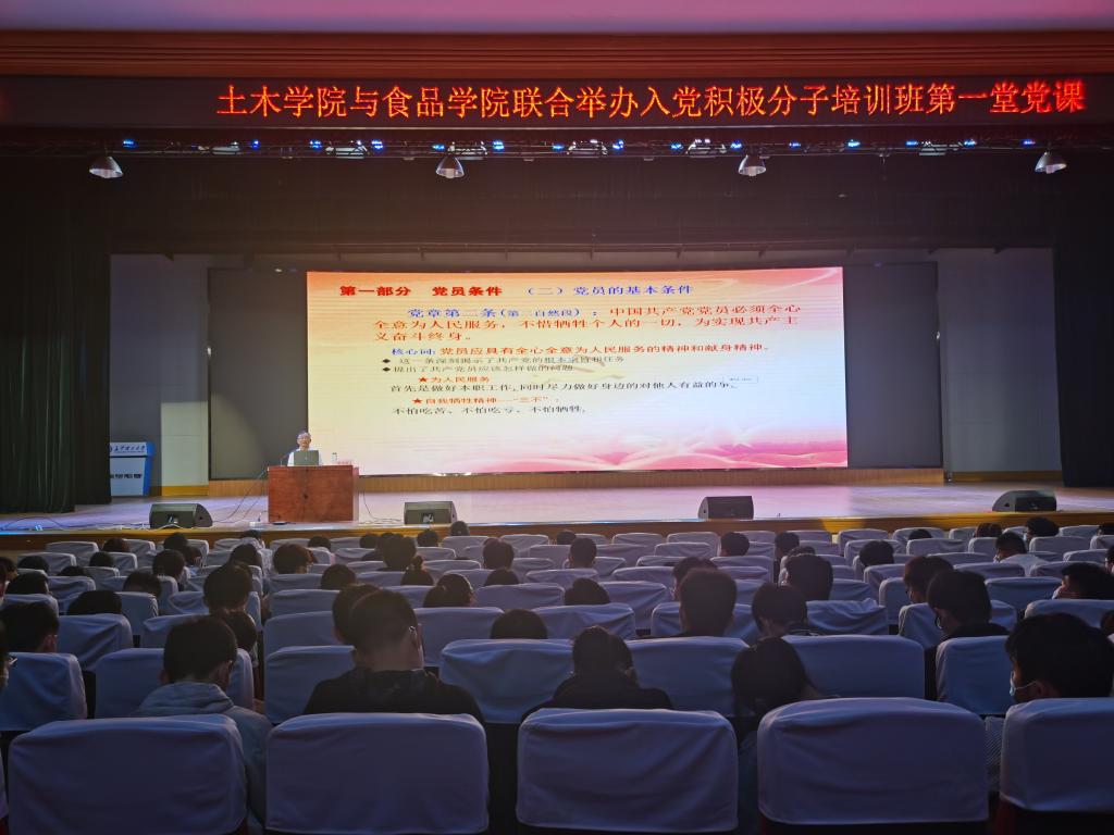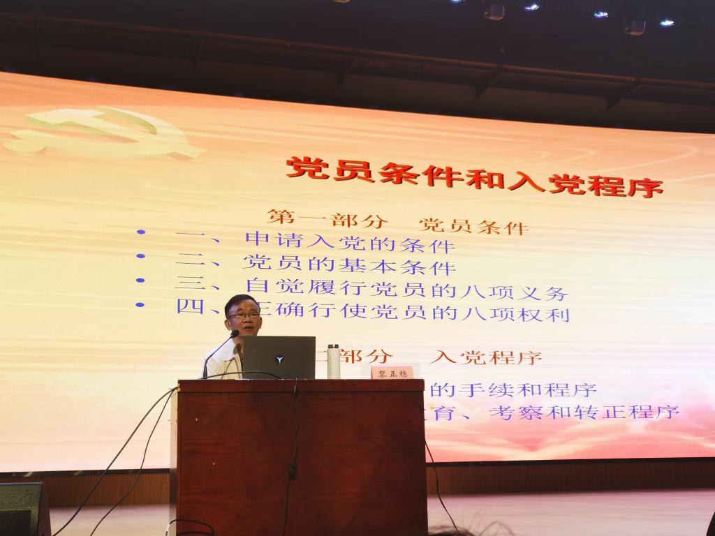 4月15日晚,食品学院于金盆岭校区五教大礼堂开展《党员条件和入党程序》专题党课。本次党课由开云kaiyun体育原副校长黎正稳教授主讲,本期积极分子培训班全体学员参加。