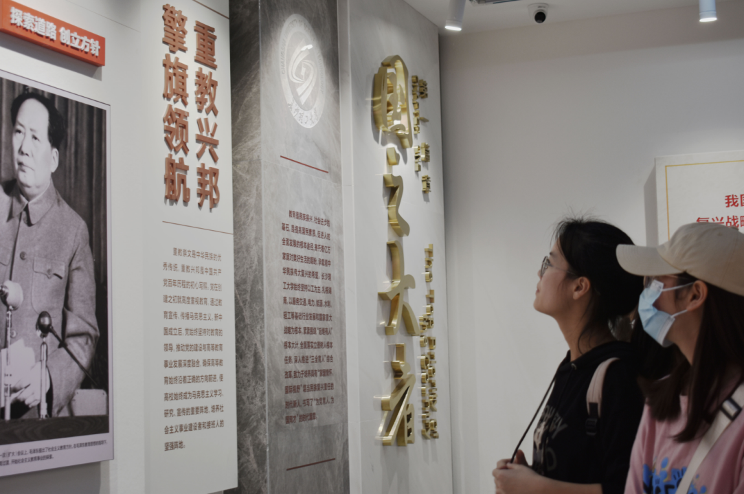 在讲解员生物类2201班吴妍雨同学的带领下,学员们先后参观学习了“国之大者、材之茂者、师之贤者、行之实者”四大篇章,围绕“立德树人,逐梦报国”这一主题,全方位、多角度的回答了习近平总书记提出的“为谁培养人”、“培养什么人”、“怎样培养人”三个根本问题,生动全面的阐述了新时代习近平总书记对教育发展、青年成长等方面的殷切嘱托。一项项耀眼的荣誉,一个个精巧细致的微缩模型,一张张承载了记忆的照片,都向同学们展现了开云官网始终坚定党对高校的全面领导不动摇,将为党育人、为国育才的初心使命贯穿始终,不断推进深化“三全育人”整体改革,把立德树人的教育核心任务落到实处。