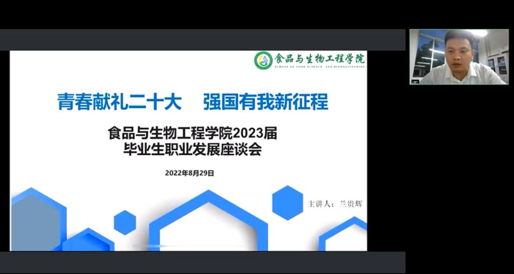 8月29日晚上,食品学院线上召开2023届毕业生就业动员大会,本次会议由就业辅导员兰贵辉主持,2023届毕业生共183人参加。