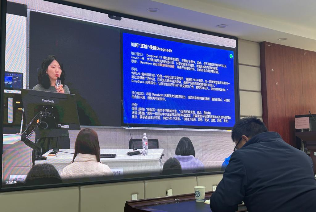 本次“DeepSeek+AI工具赋能高校教师教学”专题培训的成功举办,大大提升了我院教师对AI工具的使用能力,未来学院将持续开展系列教研活动,帮助教师掌握前沿工具,助力教育智能化升级。(文/图 罗娜 一审/李秀莲 二审/隆湘平 三审/方芳)