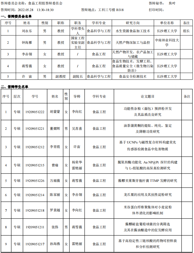 2022年食品与生物学院研究生论文答辩安排表(四)
