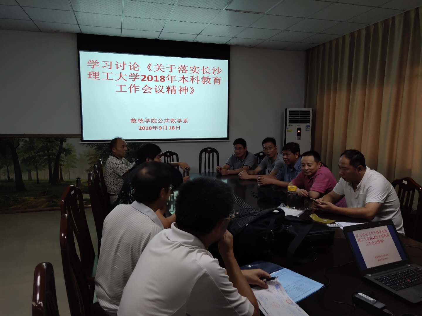 9月18日下午两点,数统学院公共数学系全体教师在理科楼A-503召开了“组织学习《2018年本科教学工作例会扩大会议学习资料》”的教研活动,会议由公共数学系主任谭艳祥主持,全系老师进行了充分的学习和讨论。
