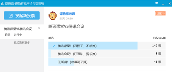 为了满足更多同学的实际情况,谭老师进行了问卷调查,经过多数学生的推荐,最终选择了腾讯课堂作为网络直播授课平台。