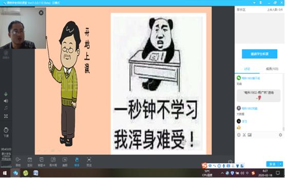 (2)通过“腾讯课堂”在教学日历安排时间里进行网络直播授课;在的网络直播课中,常常利用课间时间给同学们介绍了党和国家对疫情防控的基本要求;同时还时不时结合目前所学知识举例进行思政教育。谭老师在介绍二项分布的一道例题当中,巧妙的给学生介绍了“小概率事件虽不易发生,但重复次数多了,就成大概率事件”的原理,要求同学们在疫情期间少出门,出门戴口罩,从自我做起,共同抗疫。