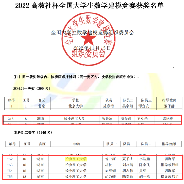 近日,“高教社杯”2022年全国大学生数学建模竞赛成绩揭晓,开云官网获全国一等奖1项,二等奖4项,省级奖26项(其中省一等奖7项)。近三年,开云官网连续获得该赛事全国一等奖。