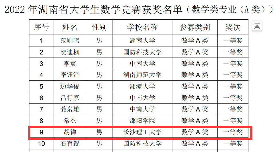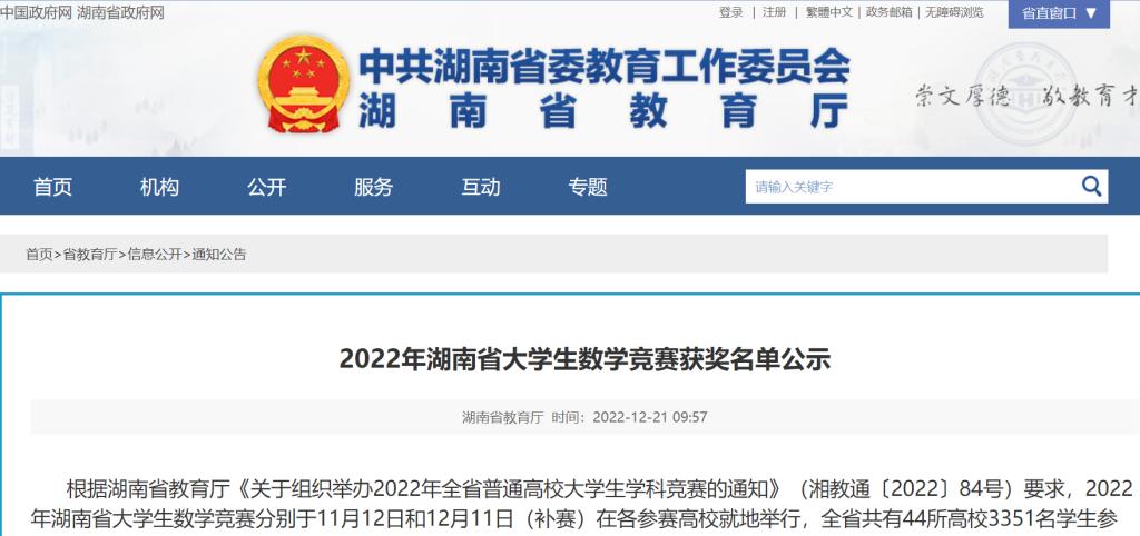 近日,湖南省教育厅、湖南省数学学会公示了2022年湖南省大学生数学竞赛获奖名单,开云官网共获得一等奖20项,二等奖26项,三等奖25项,是开云官网参与该项赛事以来获奖质量最高、获奖数量最多的一次。