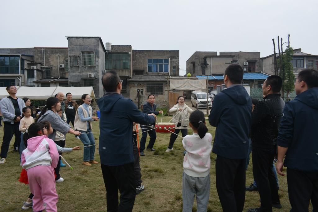 在素质拓展环节,学院精心准备了3个活动。第一个游戏是“鼓动人心”。教师们按照系部进行分组,每组派出代表参加比拼。老师们通过配合控制乒乓球在鼓面上连续拍打,使其保持跳跃而不落地,力争坚持到最后。第二个游戏是“重走长征路”。规则是各组派出教师代表以乒乓球为“脚步”,在特制的长征地图上“行走”。每走一步,都需要团队成员的精心策划和默契配合,确保乒乓球能够准确无误地落在指定的“站点”上。第三个游戏是“搭积木”。每组成员需要用绳子拉动积木,将其叠成7层高的塔。这些游戏既要求具备细致的观察力,又要有良好的沟通能力和团队协作精神。在紧张而有趣的活动氛围中,教师们纷纷发挥出了自己的聪明才智,成功完成了各项挑战任务。