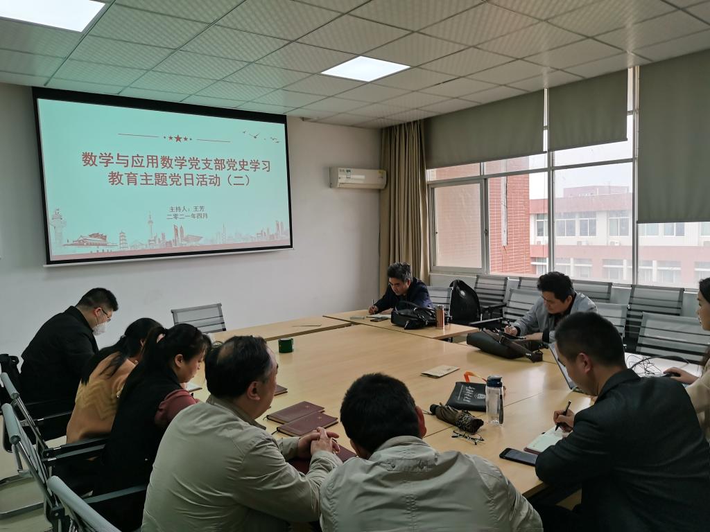 2021年4月13日,学院数学与应用数学系党支部书记王芳组织支部全体党员认真学习了党史学习教育之“学史增信”专题学习,具体有《关于坚持和发展中国特色社会主义的几个问题》、《在全国抗击新冠肺炎疫情表彰大会上的讲话》、《在纪念中国人民志愿军抗美援朝出国作战 70 周年大会上的讲话》等材料。