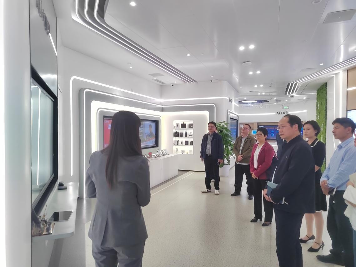 在科大讯飞中南总部展厅,韩艳一行深入了解了公司的发展历程、核心技术、应用场景以及未来蓝图,体验了公司在语音识别、机器翻译、自然语言处理和大模型等领域的最新技术成果。