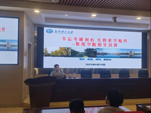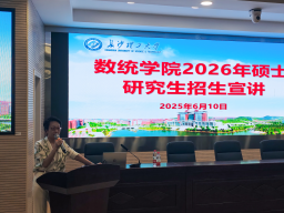 为帮助学院学生更好地了解2026年学校研究生招生政策和数学统计类研究生培养情况,6月10日下午,学院在理科楼A200举办2026年硕士研究生招生宣讲会。会议由学院副院长胡海军主持,研究生院副院长曾玲、学院副院长李景、统计学学科负责人朱恩文及相关老师出席会议。