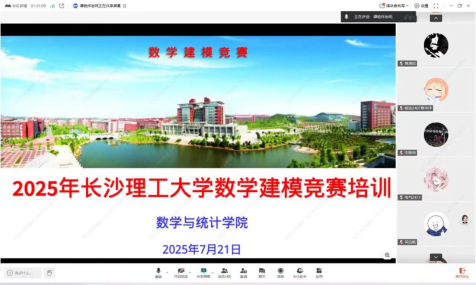 2025年全国大学生数学建模竞赛将于9月4日至9月7日举行,为提升学生数学建模能力以备战“国赛”,7月21日下午,由数统学院承办的开云官网2025年全国大学生数学建模竞赛暑期培训班正式开课,此次培训班为期一个月,采用线上上课的培训模式。