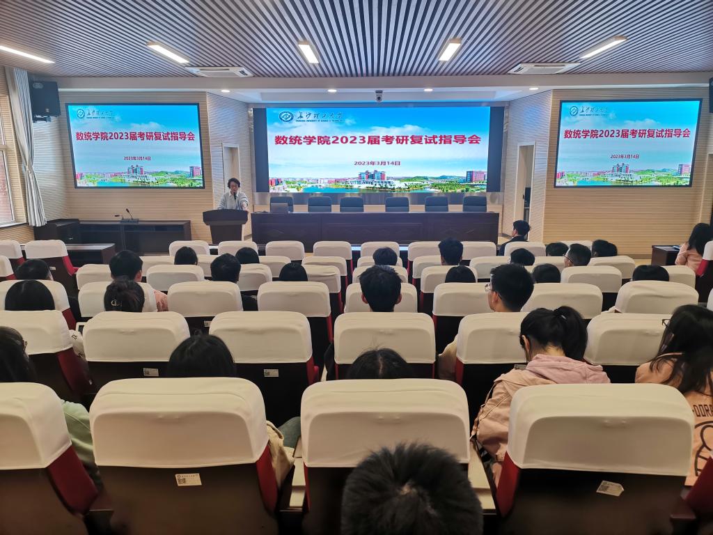 3月14日下午,数统学院召开2023届考研复试指导交流会,此次会议所有将参加考研复试的同学参加,学院党委副书记郑忠辉、副院长李景、科研办主任黄洪出席。