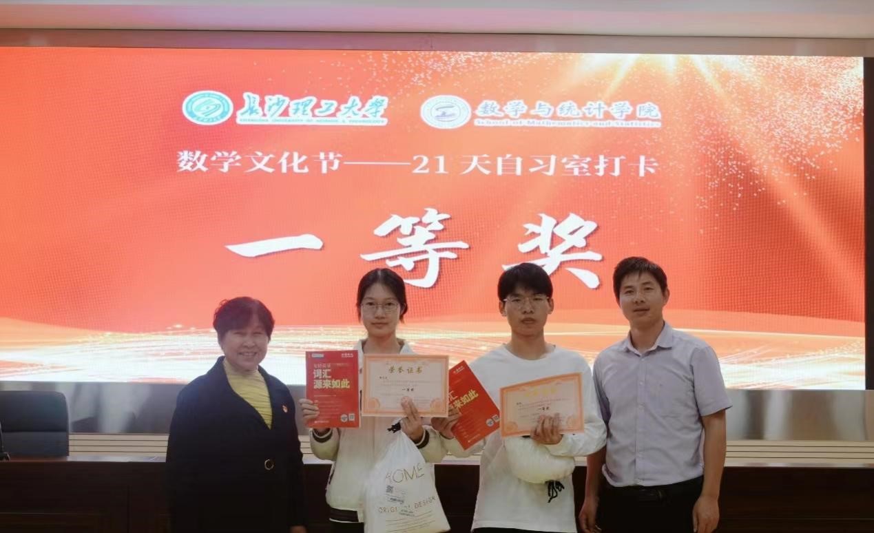 随着主持人精彩的开场词,颁奖仪式在轻松欢快的氛围中开始,郑忠辉、黄凤英为获奖的同学颁奖。郑忠辉指出,21天自习室打卡活动是以进一步帮助同学们提高自律意识,养成良好的学习习惯为目的,也是2023年数学文化节系列活动之一。活动开展以来,有131名同学积极报名参加,其中获得一等奖14人,二等奖25人,三等奖39人。在全院营造了积极向上、努力进取的学习风气,大力助推了学院的学风建设。