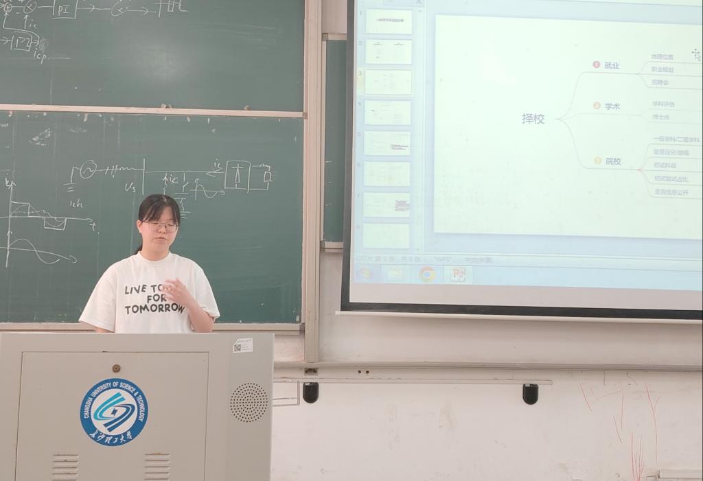 毕业生代表余文正、徐燕、刘佳仪、冯佳欣、王情缘和贺佳欣分享了他们的考研经验。他们从择校、时间安排、公共课复习和专业课复习以及复试准备等方面分享了自己的心得。