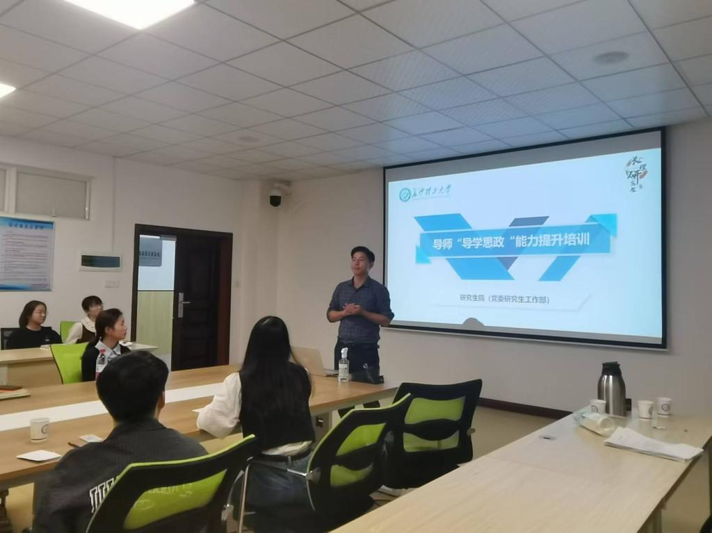 为全面加强导师思政教育工作,提升导师的思政素养和育人能力,11月14日下午,数统学院在理科楼A212举办了导师“导学思政”能力提升培训,此次培训由学院党委副书记、副院长郑忠辉主讲,学院新任硕士生导师和博士生导师,以及部分研究生代表参与。