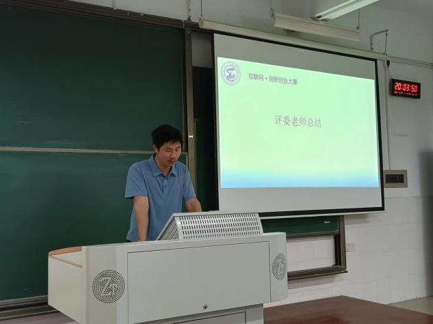 会议尾声,郑忠辉老师对本次大赛各队伍的创新成果进行了系统总评,在肯定各队答辩表现的同时,亦指出了不足之处,并强调了“互联网+”在国家发展中的重要贡献,鼓励同学们积极参与到这一时代浪潮中。