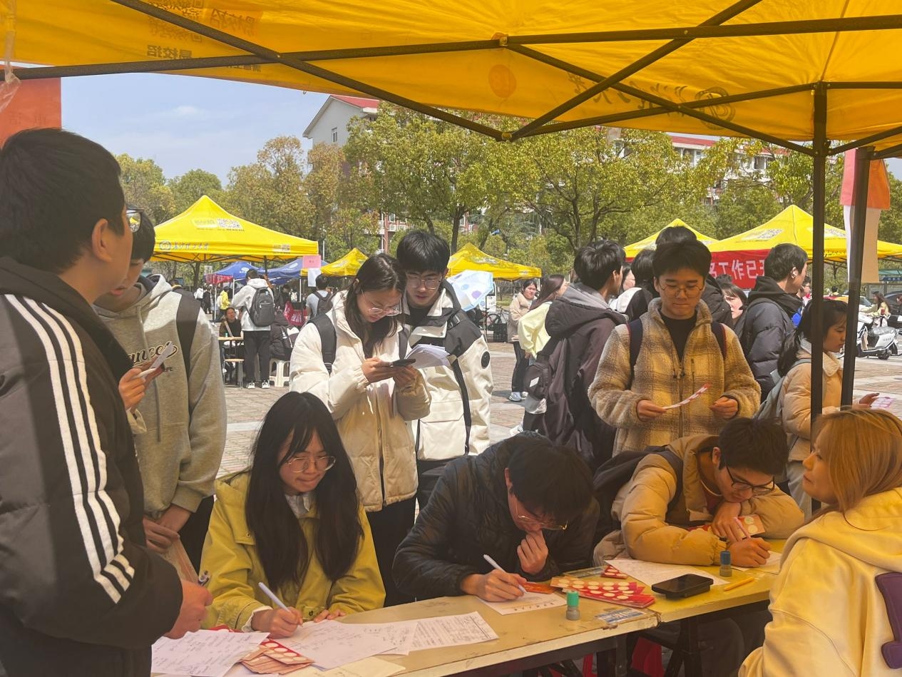 从手机里的智能推荐到城市交通的智慧调度,从天气预报的精准模拟到人工智能的飞速迭代,数学的思维与方法早已融入生活的方方面面。此次“π”Day活动新增AI体验乐园,借助AI模拟面试设备体验不同就业岗位,并就学生的实际情况给予择业建议。学生自主研发的智能机器人在现场进行精彩表演,展现了科技魅力,吸引广大青年驻足观看;此外,数学模型体验区的“今天去哪吃呀”“心情天气预报”“心灵符号解码”等趣味模型,让学生深刻感悟数学魅力;数学游戏乐园设置解环、电话号码运算、过了“π”秒等7项小游戏,增加数学趣味。