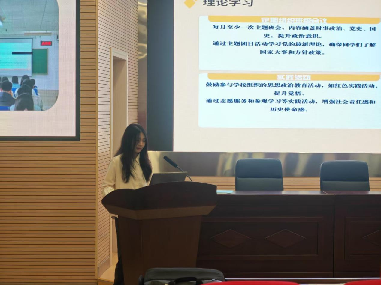 答辩现场,各班级代表依次登台,借助精心制作的PPT,围绕班级结构、学风建设、党团发展情况、班级荣誉、宿舍风采、班级建设与规划六个关键方面进行精彩讲解。在学风建设方面,不少班级亮点频出,如有的班级组建“学习互助小组”,依据课程和学习能力分组,成员间互相答疑、分享资料和经验,为提升班级整体成绩提供了有效途径。在班级文化建设上,部分班级展示了独特成果,包括优秀宿舍展示、形式多样的志愿服务活动等,充分展现了班级的活力与凝聚力。