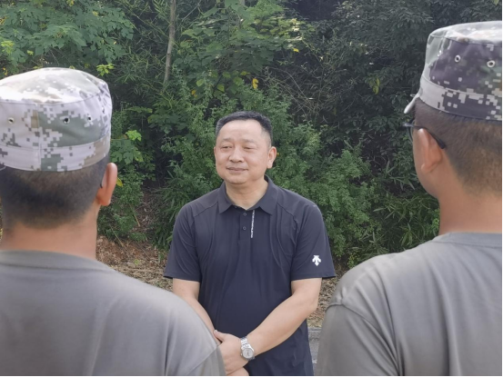 向永生与大家亲切交流,他充分肯定了同学们在高温酷暑下依然保持高昂斗志、坚持刻苦训练的顽强毅力,并反复叮嘱大家在训练过程中一定要时刻关注自身身体状况,做好防暑降温措施。他还希望学员们在意志锤炼、纪律遵守、团结协作等方面持续发挥模范带头作用,以实际行动为全校同学树立榜样,共同营造积极向上、团结奋进的良好氛围。