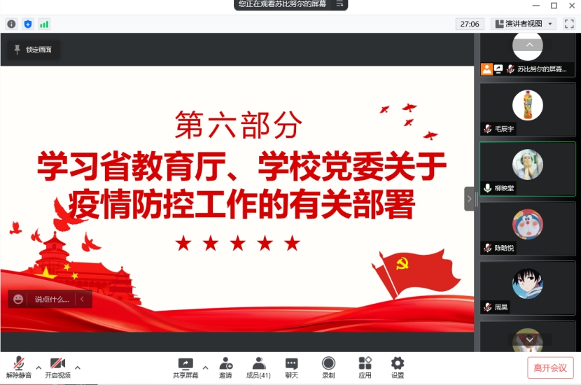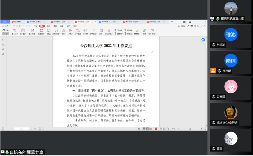3月下旬,数学与统计学院采取集中与分散、线上与线下的方式,分批组织全院党员观看十三届全国人大五次会议,领会2022年全国两会工作精神和学习疫情防控工作的相关部署。