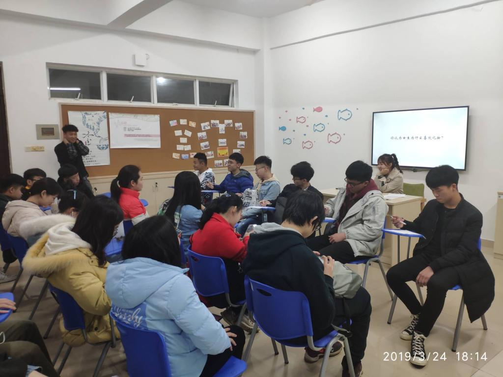 3月24日下午,数统学院心理部在云塘校区理科楼A501开展三月份“遇见心动,遇见爱”主题微电影活动。数统学院心理部成员和18级的24名同学以及校心理部测评部干事参加本次活动。本次活动由心理部成员金敖主持,其他心理部成员协助开展