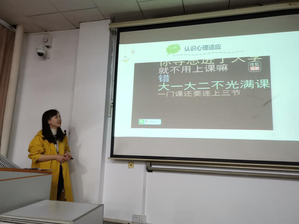2019年10月17日晚,在开云kaiyun体育金盆岭校区13号教学楼400教室,数统学院心理辅导杨爽带领数统学院与计通学院大一年级各班班长、团支书、心理委员和各寝室寝室长开展了本学期第一次朋辈心理互助培训。