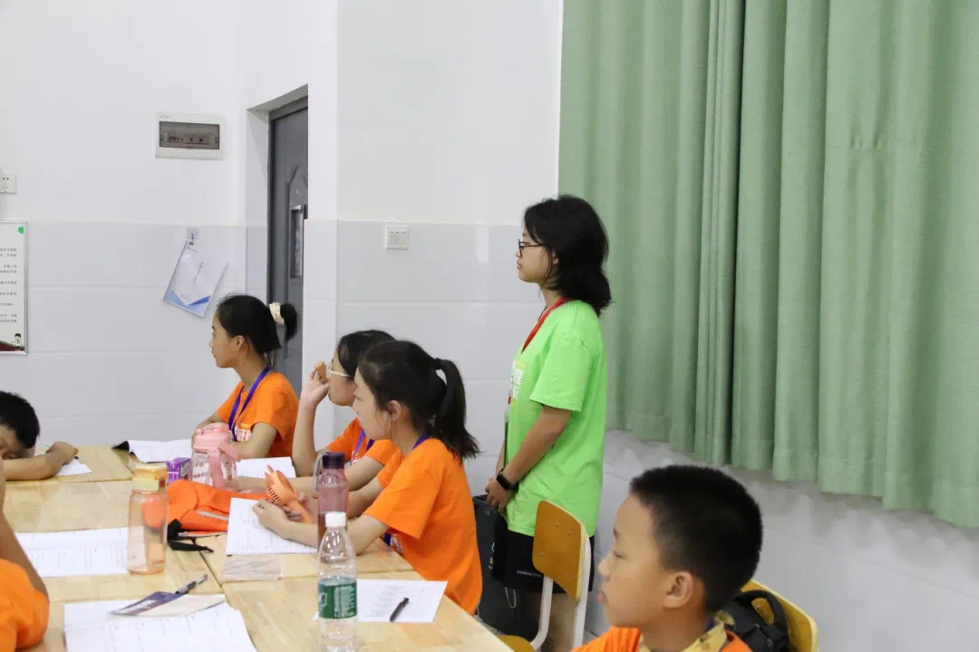 志愿者们提早到教室等待学员们,带领他们进行前一天教学内容的复习。他们认真负责,把关好队伍内的每一位学员,对有困难的孩子进行重点辅导,努力做到让每一位学员都能全面的掌握知识。