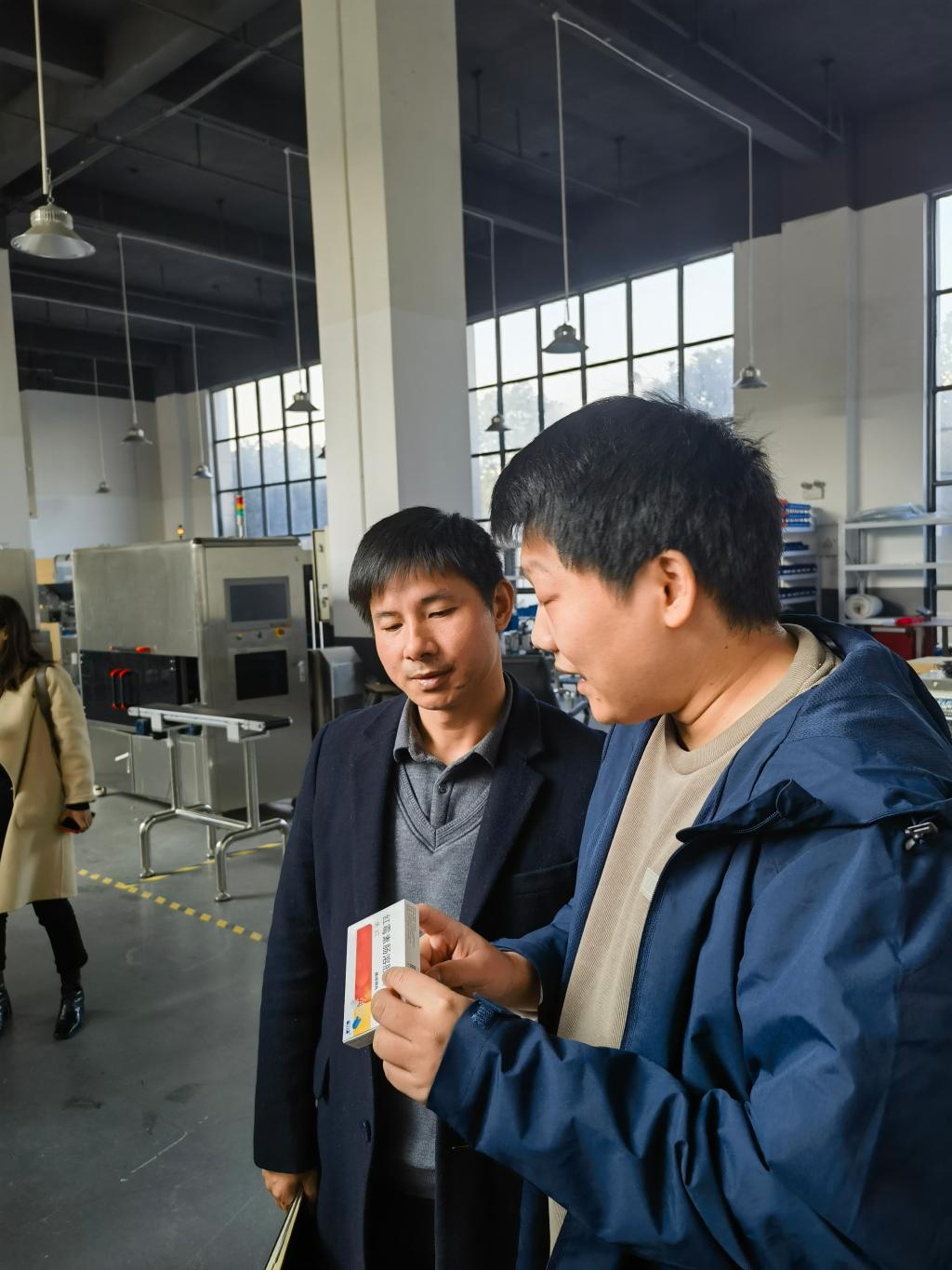在纳威尔(长沙)智能科技有限公司,校友陈建成作为公司联合创始人,介绍了公司的基本情况、发展规模和未来发展规划,带领参观了公司生产线、工作及生活环境。他表示医药食品包装检测离不开算法的支持,通过进一步加强产学研合作,吸引学弟学妹们来到公司实习,希望更多来自数统学院的高端人才加入。