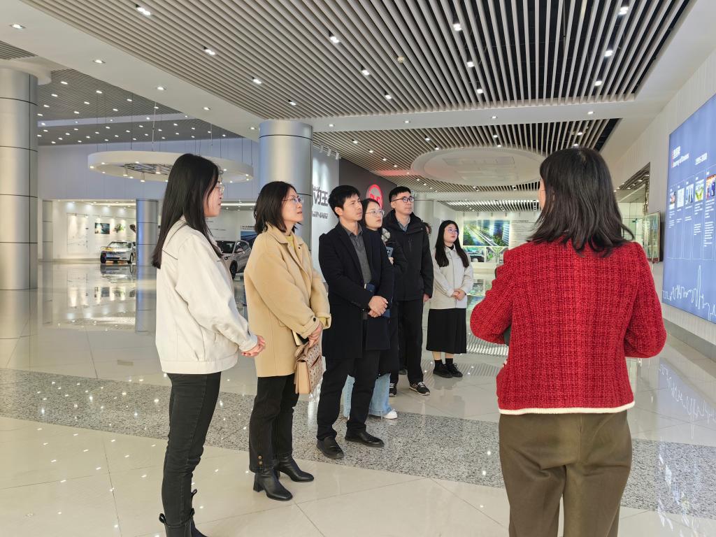 在长沙市比亚迪汽车有限公司,郑忠辉与彭峥参观了公司的展示馆,了解了公司的发展历程、公司理念、业务板块等情况,观摩了汽车生产线,了解了汽车从零部件到整车交付的全过程。郑忠辉与公司华中地区人力资源部招聘负责人罗雪深入沟通,她详细介绍了公司的人才培养规划、竞升机制、公司福利等情况,表示欢迎学生到公司实习和就业。