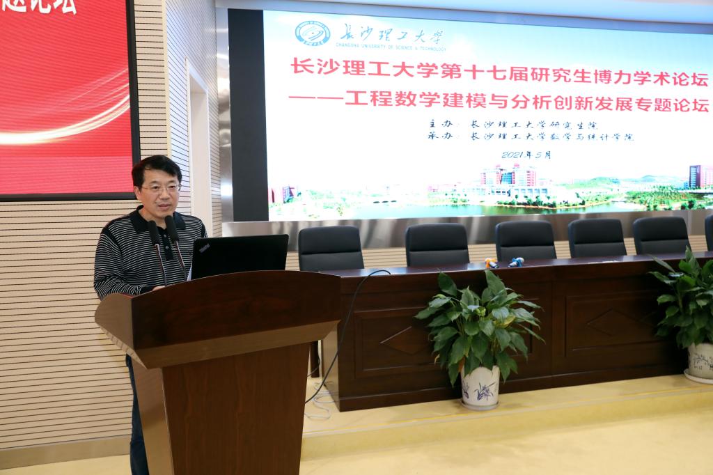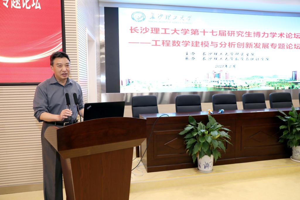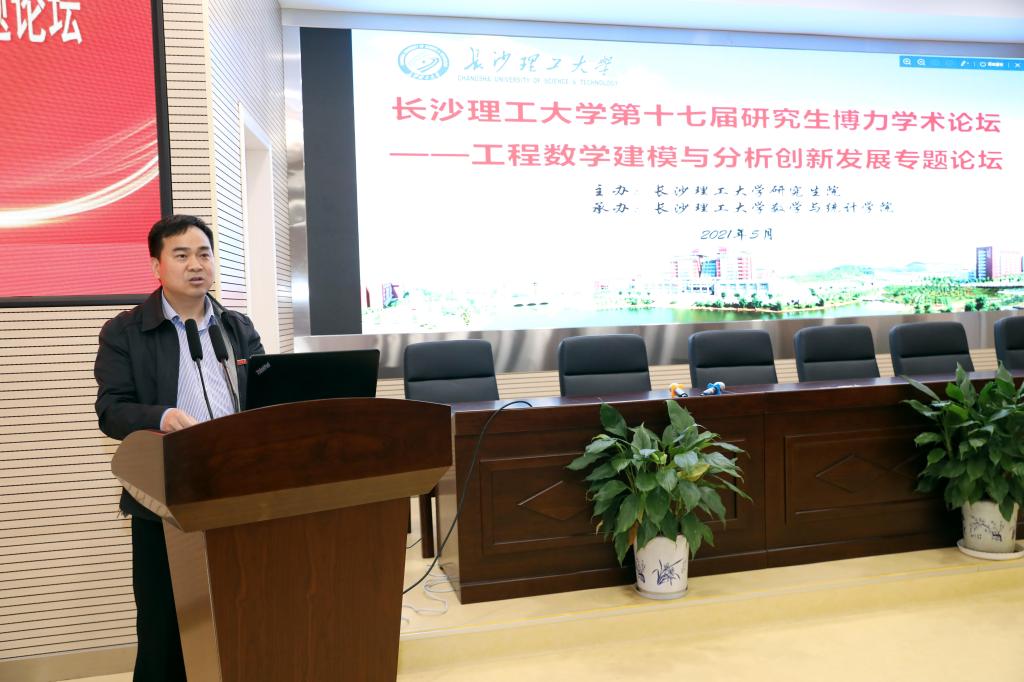 5月25日下午两点,开云kaiyun体育第十七届研究生博力学术论坛——工程数学建模与分析创新发展专题论坛开幕式在理科楼A200成功举行。此次论坛由学校研究生院主办,数学与统计学院承办。湖南大学袁朝晖教授和李亚琼教授、中南大学潘克家教授和邓又军教授,校研究生院院长管德清、副院长兼研工部部长田上,数学与统计学院党委书记张宏伟、院长黄创霞等相关领导和专家出席了开幕式,开幕式由数统学院副院长李景主持,学院师生共计200余人参加了此次研究生学术论坛。