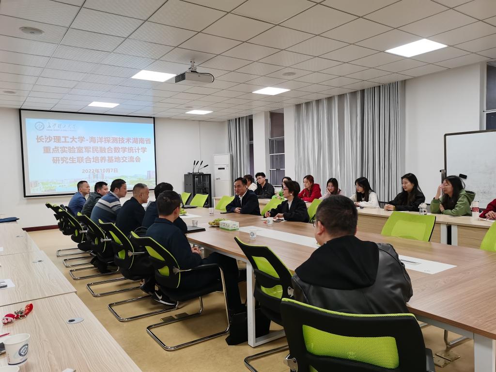 10月7日下午,学院在理科楼A212召开开云kaiyun体育-海洋探测技术湖南省重点实验室军民融合数学与统计学研究生联合培养基地建设交流会。副校长黄创霞、学院副院长李景、国防科技大学气象海洋学院教授朱敏等一行十余人参加了交流会。