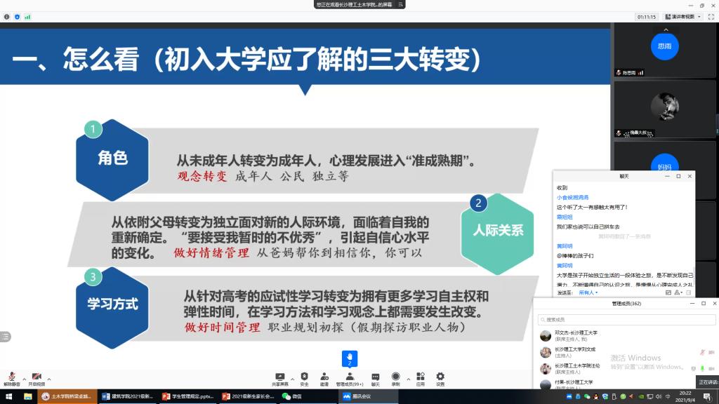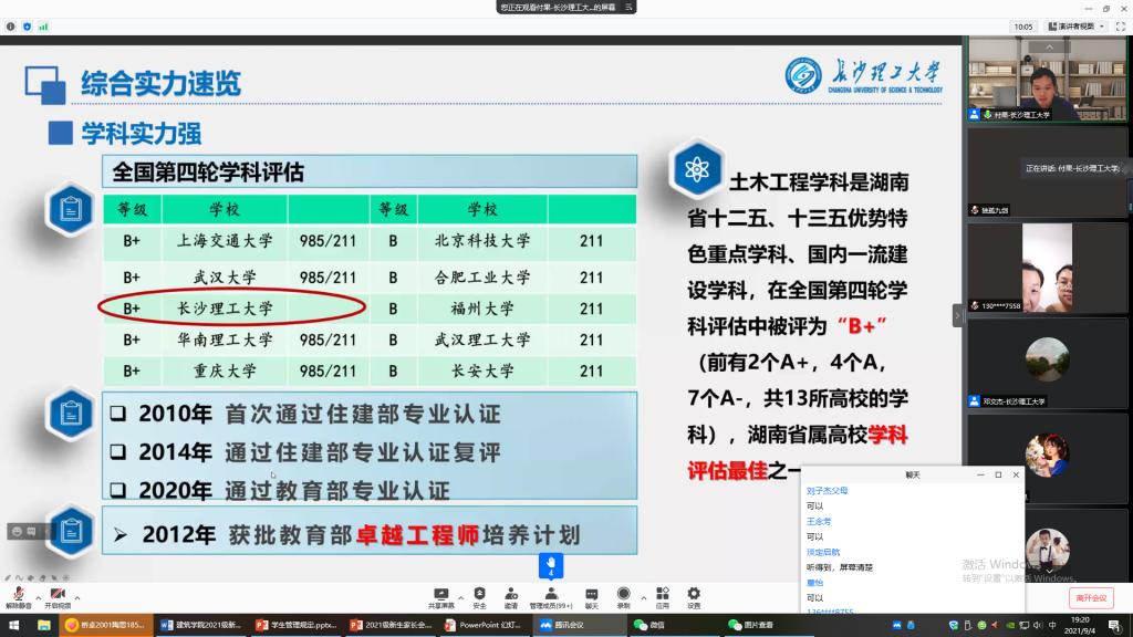 9月4日晚,开云kaiyun体育土木工程学院党委副书记黄阿明、副院长付果、学工办主任汪伦、2021级辅导员邓文杰与400余名新生家长相聚云端,举行“家校架心桥、携手育新人”2021级本科生新生线上家长会,家长会由2021级辅导刘文成主持。