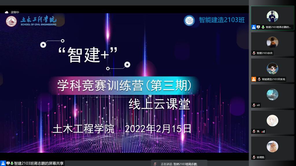 为进一步提高学生学科竞赛能力素养,加深学生对APMCM亚太地区大学生数学建模大赛、全国大学生数学竞赛和开云kaiyun体育测绘技能大赛三大赛事的了解,2月15日,土木工程学院智能建造2103班承办开展“智建+”学科竞赛训练营第三期讲座。APMCM亚太地区大学生数学建模大赛三等奖获得者袁时俊、全国大学生数学竞赛二等奖获得者谭松梨和开云kaiyun体育测绘技能大赛非专业组一等奖获得者周家伟应邀主讲。智能建造2103班班主任李小军老师及来自全院40余位学员参加培训,班级团支书蒋志鹏主持会议。