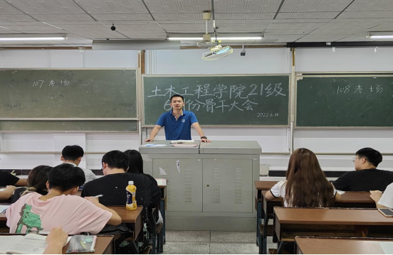 6月15日晚,土木学院于12教415召开6月份2021级学生骨干大会。年级辅导员邓文杰及70余位年级骨干参会。会议由土木2112班冯俊浩主持。