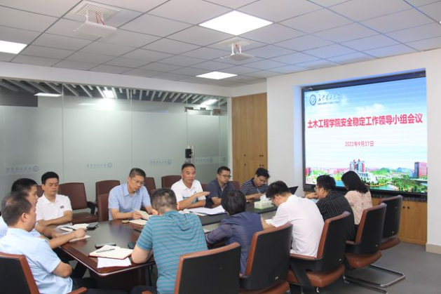 9月27日下午,我院在工二A401会议室召开安全稳定工作领导小组会议,专题研究学院安全稳定工作,研判了学院可能存在的安全隐患,再次部署安全稳定风险排查工作。副院长张永杰宣读了《土木工程学院安全稳定工作方案》,对具体工作安排做了通报布置。党委书记江河传达了湖南省教育系统安全防范动员电视电话会议精神、学校有关会议及文件精神,介绍了当前安全稳定工作形势。