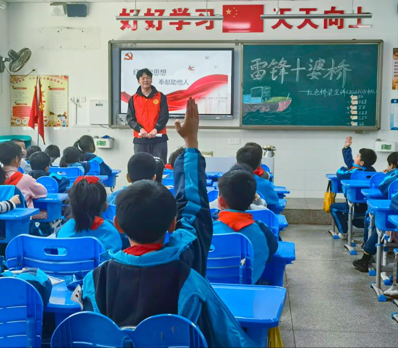 “学习雷锋好榜样,忠于革命忠于党……”这是长沙市天心区龙湾小学三年级八班传出的清澈悦耳的歌声。3月12日,长理土木工程学院红色桥梁宣讲团及智建2103班学生来到龙湾小学,引领同学们踏着雷锋当年的足迹,探寻十婆桥与雷锋的不解之缘。