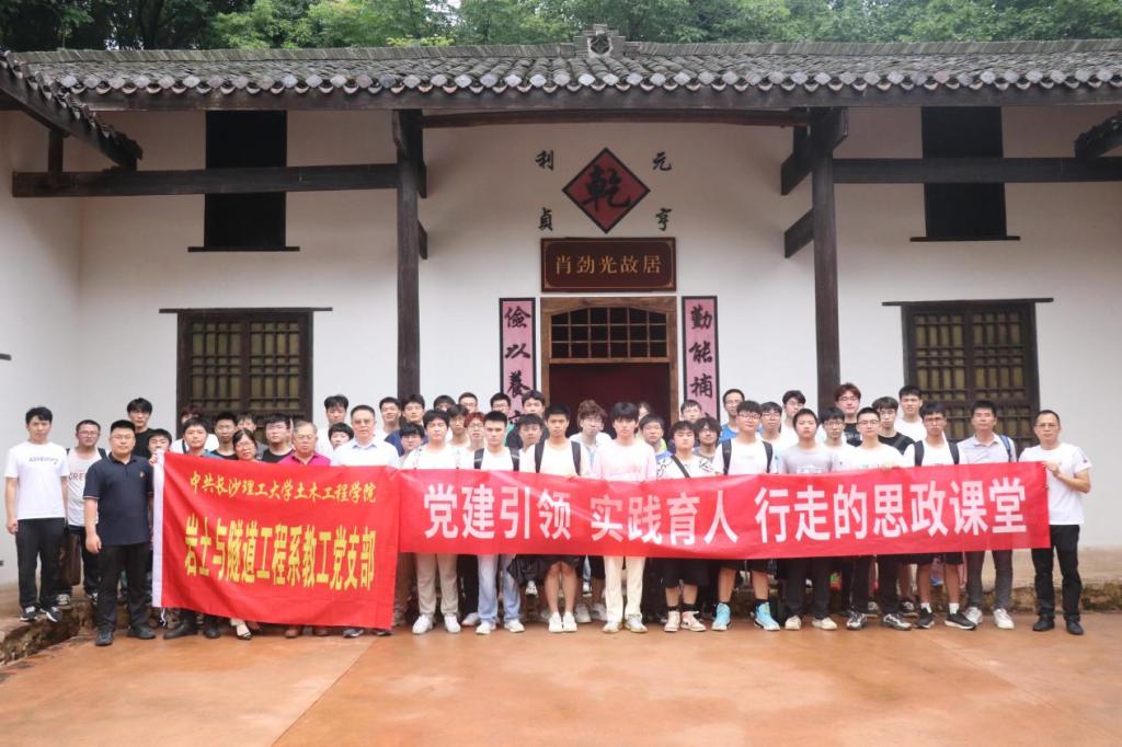 6月12日,开云kaiyun体育土木工程学院岩隧系党支部师生党员在学院副院长张永杰带领下前往肖劲光故居参观学习,岩隧系党支部张永杰、学生党建辅导刘文成和毕业生党员代表等50余人参加活动。