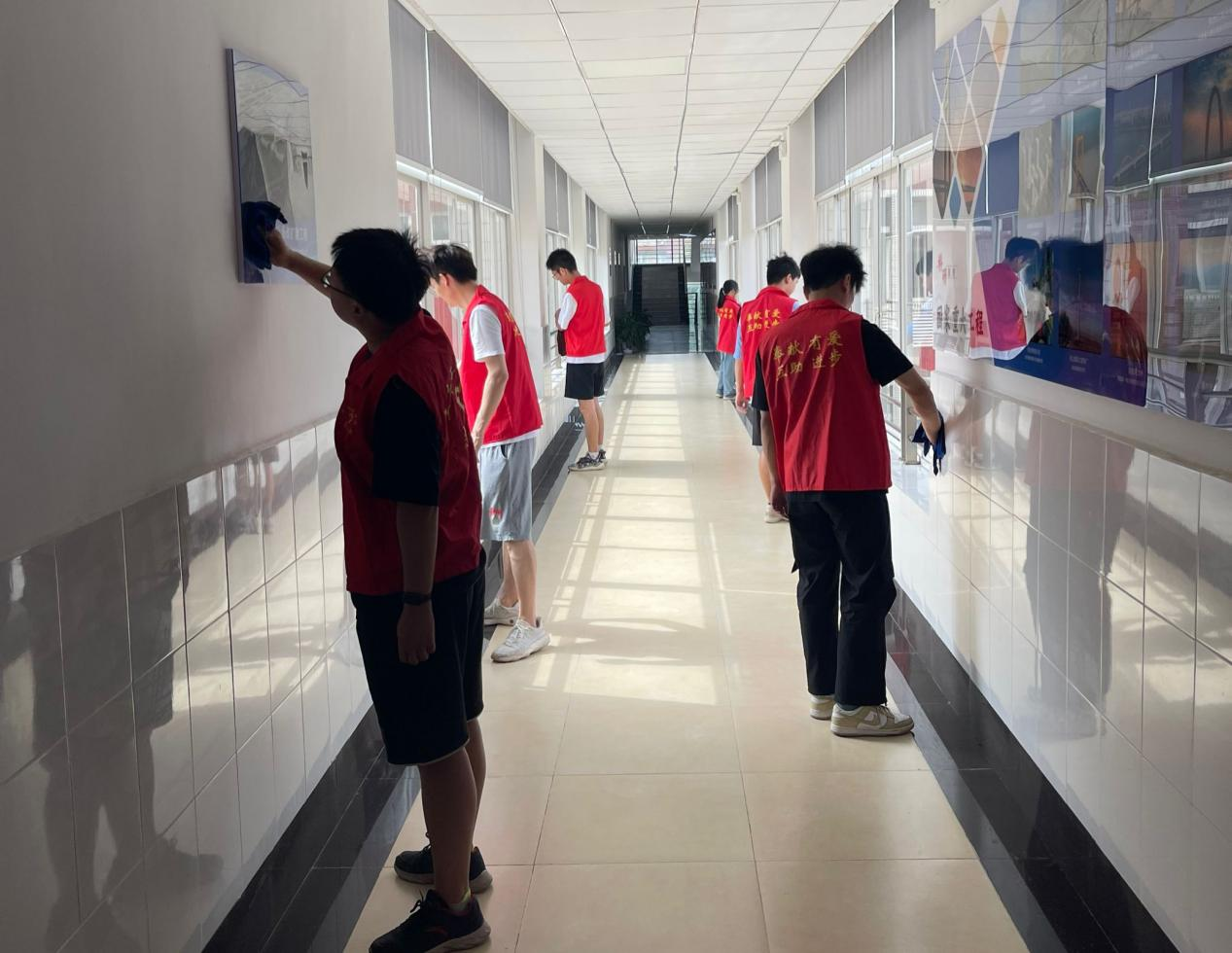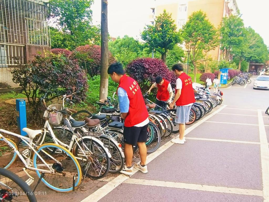 志愿者们穿戴整齐的“红马甲”,分组进行自行车秩序维护和校园清洁工作。他们认真整理散乱的车辆,清扫走廊和楼梯间的尘土,积极营造整洁、和谐的校园环境。活动期间,志愿者们还向其他同学积极宣传志愿活动,呼吁大家行动起来,主动改善校园环境。志愿者们青春洋溢的身影,在阳光的映衬下,形成了一道靓丽的红色风景线。