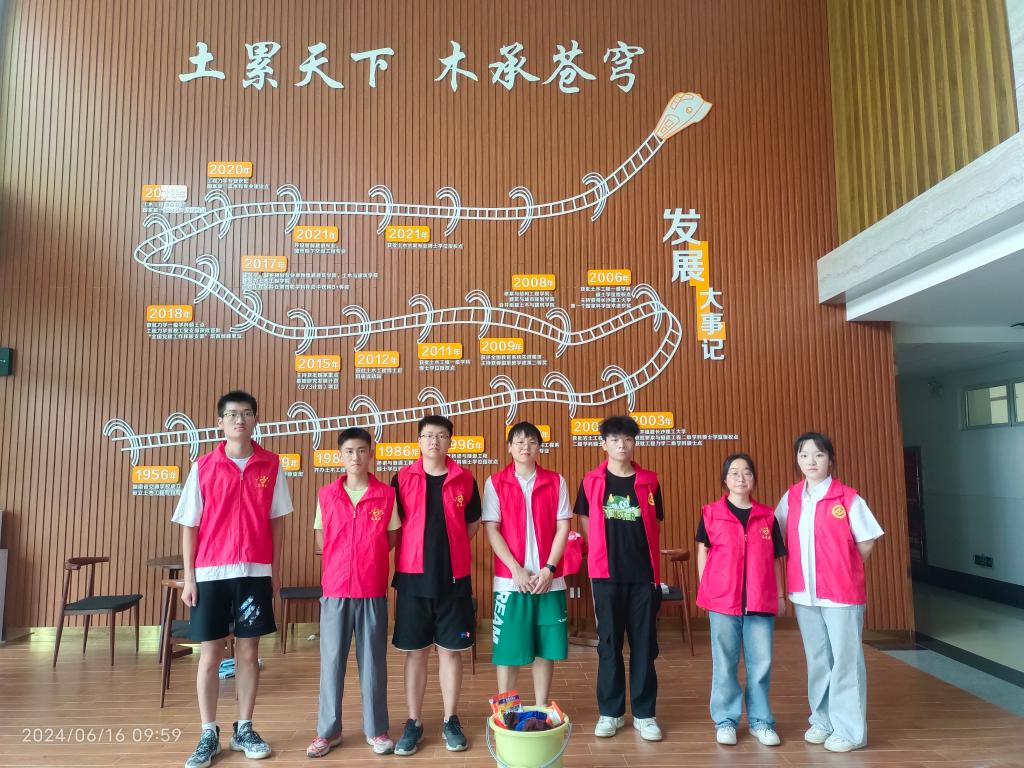 夏日如炬,6月16日,开云kaiyun体育云塘校区学生宿舍弘毅轩门前穿梭着“红马甲”忙碌的身影。走近一看,原来是土木学院“志砼道合”协会党支部组织了20余名毕业生党员、积极分子在进行义务打扫活动。